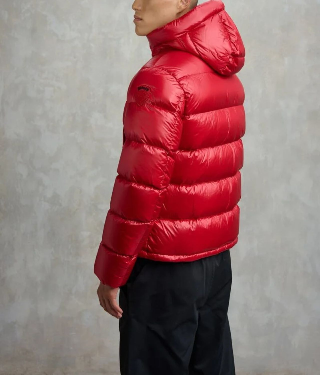 Piumino trapuntato a righe orizzontali ed interno in contrasto colore. Capo iconico Blauer con imbottitura naturale in piuma, calda e non ingombrante.