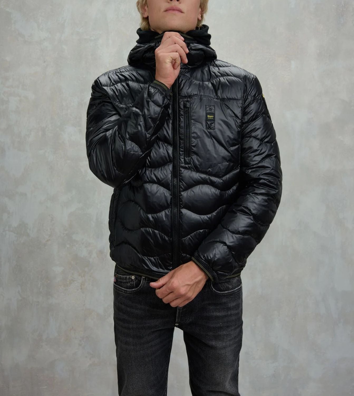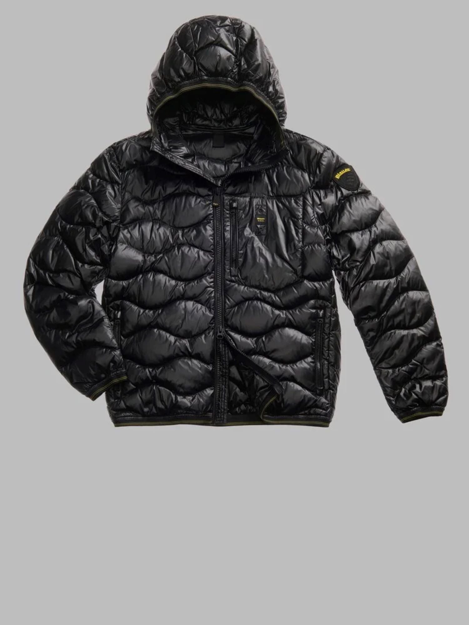 Piumino trapuntato ad onde orizzontali. Taschina applicata sul petto a sinistra per donare al capo iconico Blauer un tocco più funzionale. Imbottitura naturale in piuma, calda e non ingombrante; dedicato a chi vuole essere sempre alla moda in ogni occasione.