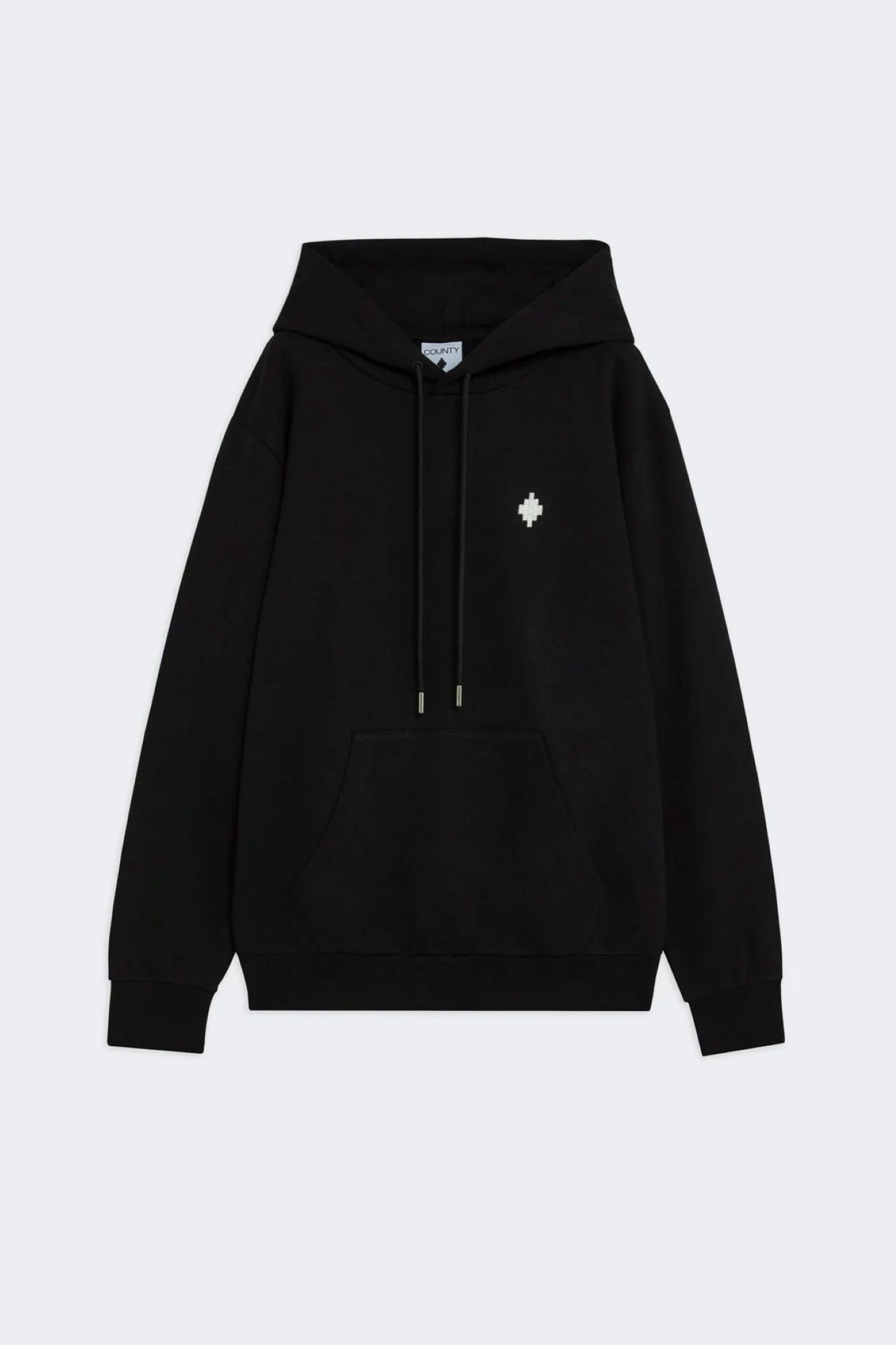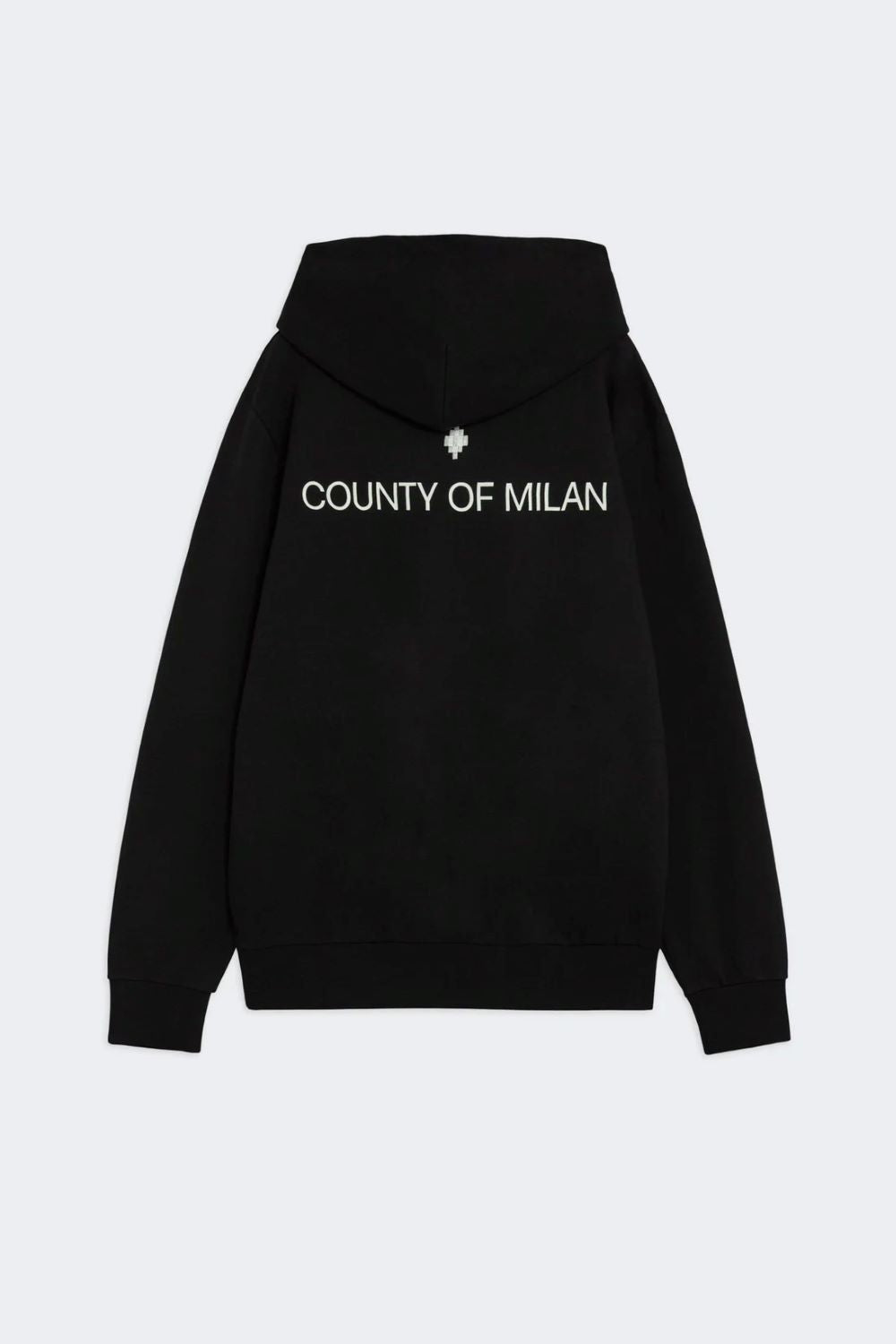- Felpa con cappuccio in cotone, tinta unita, con tasca frontale a marsupio, piccolo logo ricamato sul petto e scritta "COUNTY OF MILAN" stampata sul retro. Vestibilità comoda, polsini e fondo a costine.