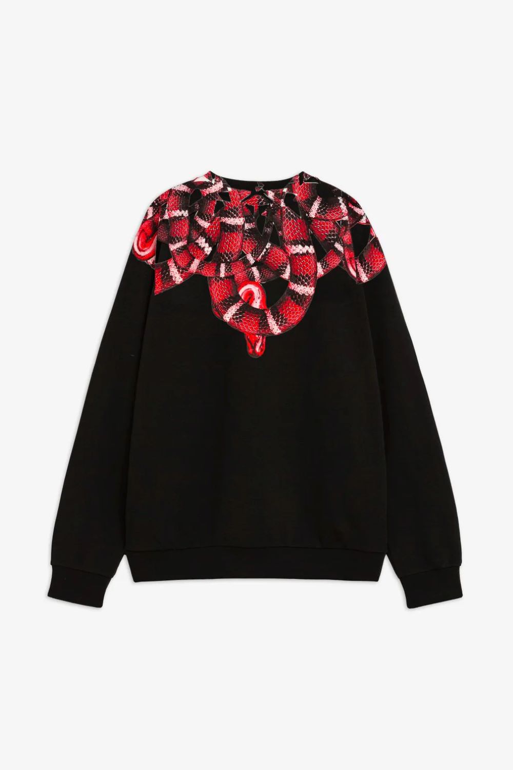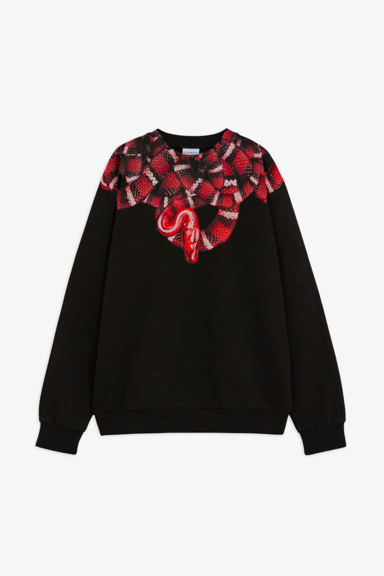 - Felpa girocollo in cotone, caratterizzata dalla stampa “snake COUNTY OF MILAN” continua su fronte e retro. Finiture a costine su collo, polsini e fondo. Etichetta 3D applicata sul fianco.
