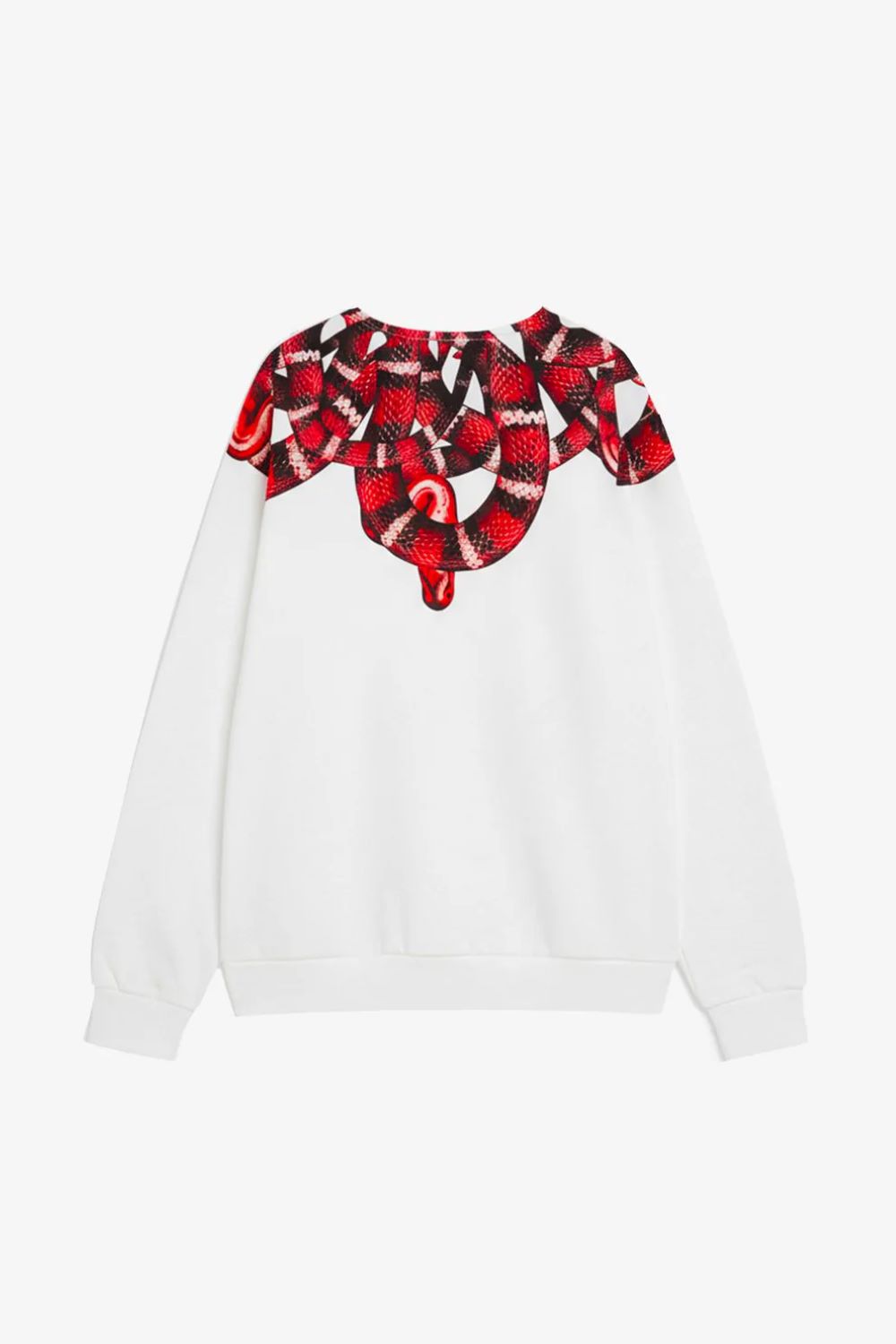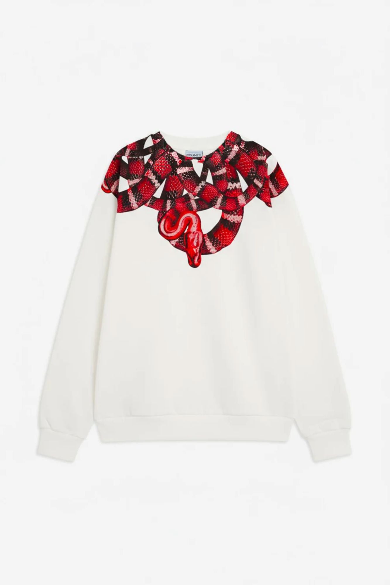 - Felpa girocollo in cotone, caratterizzata dalla stampa “snake COUNTY OF MILAN” continua su fronte e retro. Finiture a costine su collo, polsini e fondo. Etichetta 3D applicata sul fianco.