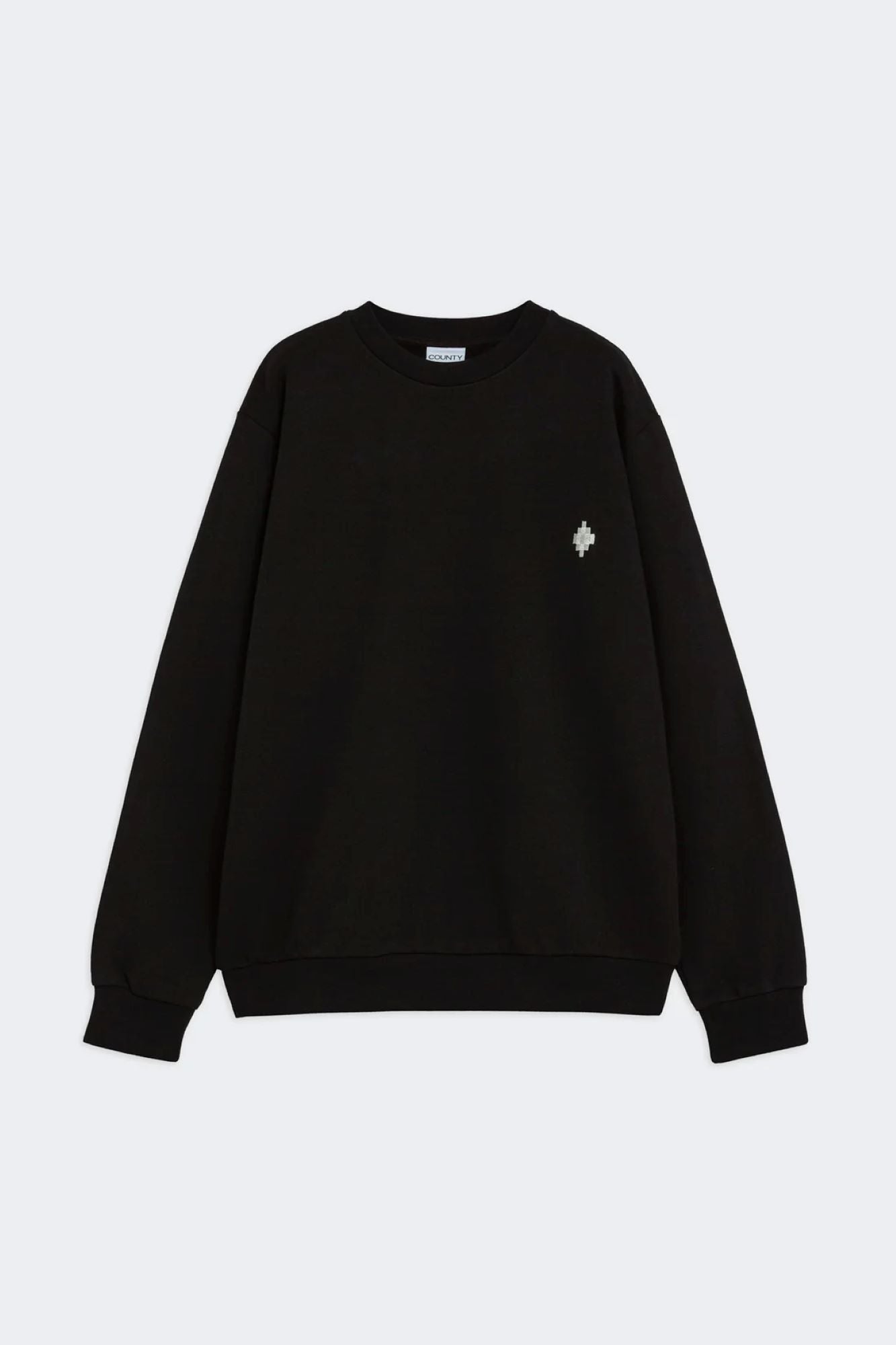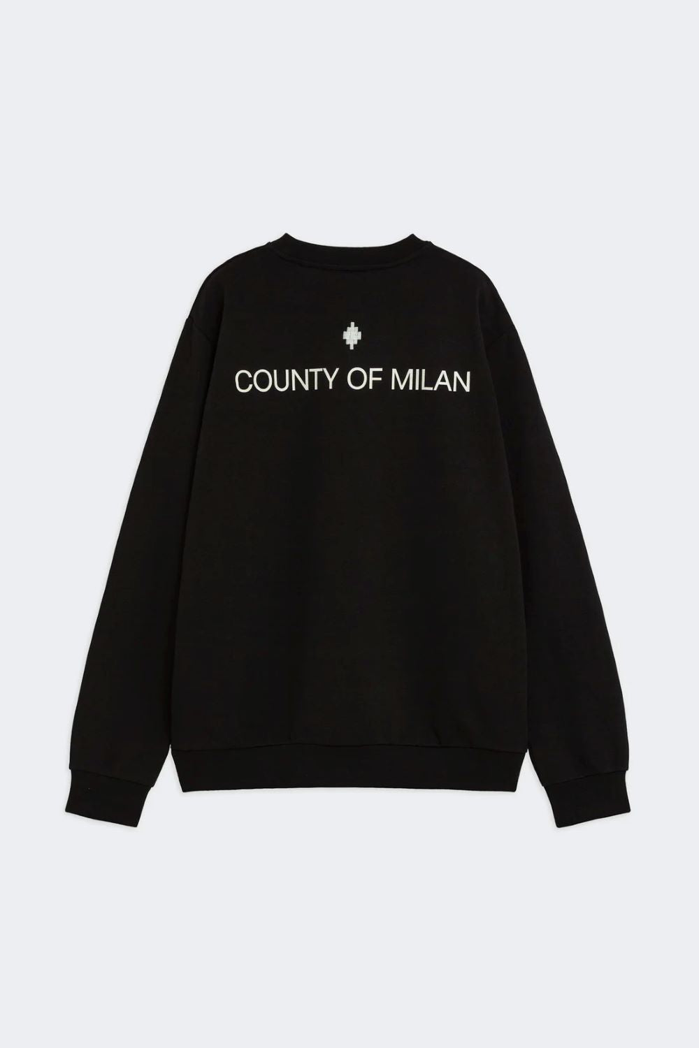 - Felpa girocollo in contene tinta unita, con logo ricamato sul fronte e stampa sul retro "COUNTY OF MILAN". Vestibilità comoda e polisini e fondo a costine.