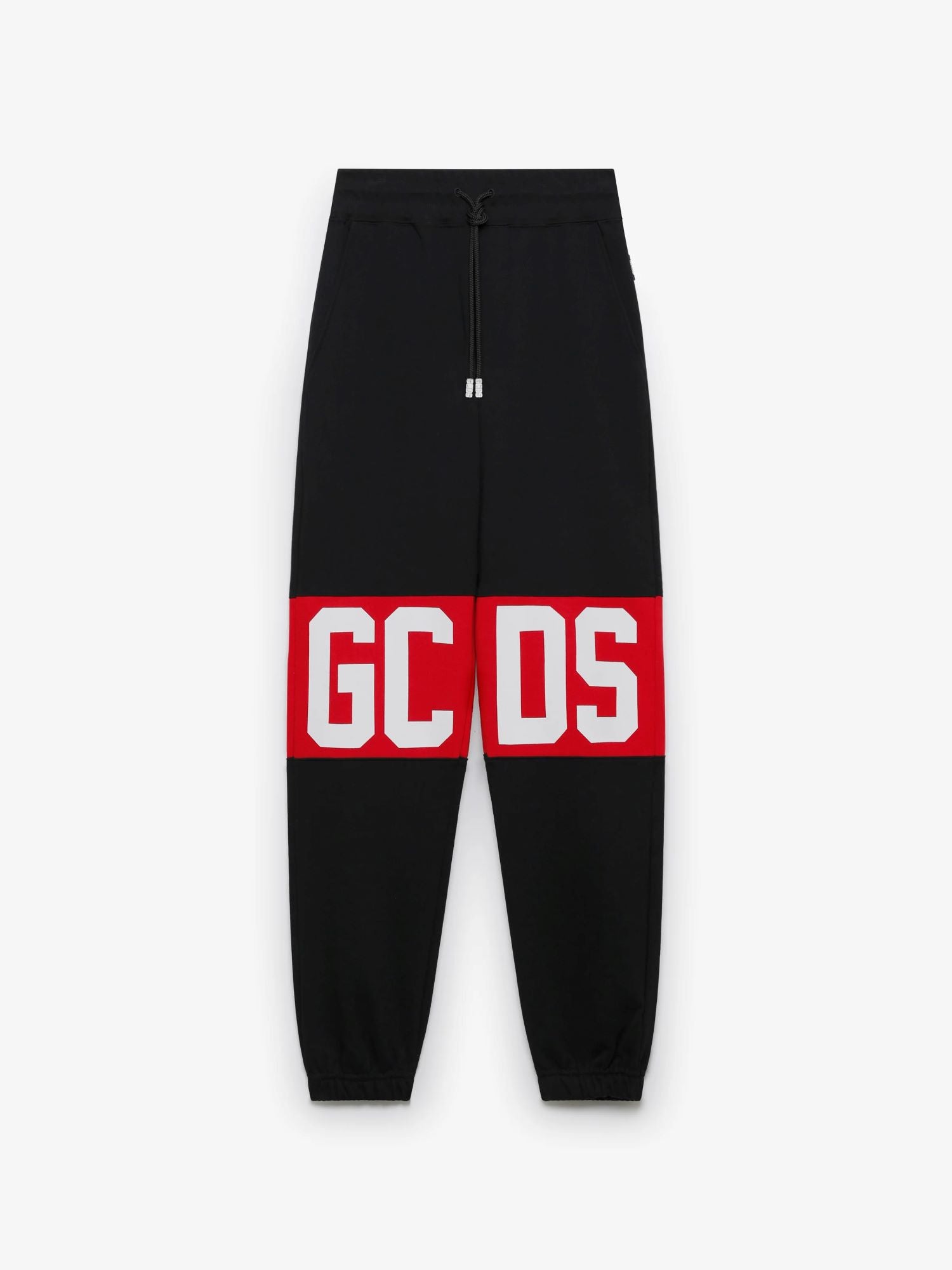 • Pantaloni in cotone con banda logo a contrasto applicata sul davanti e sul retro. Tasche laterali, elastico in vita e polsini alle caviglie. Fit regular