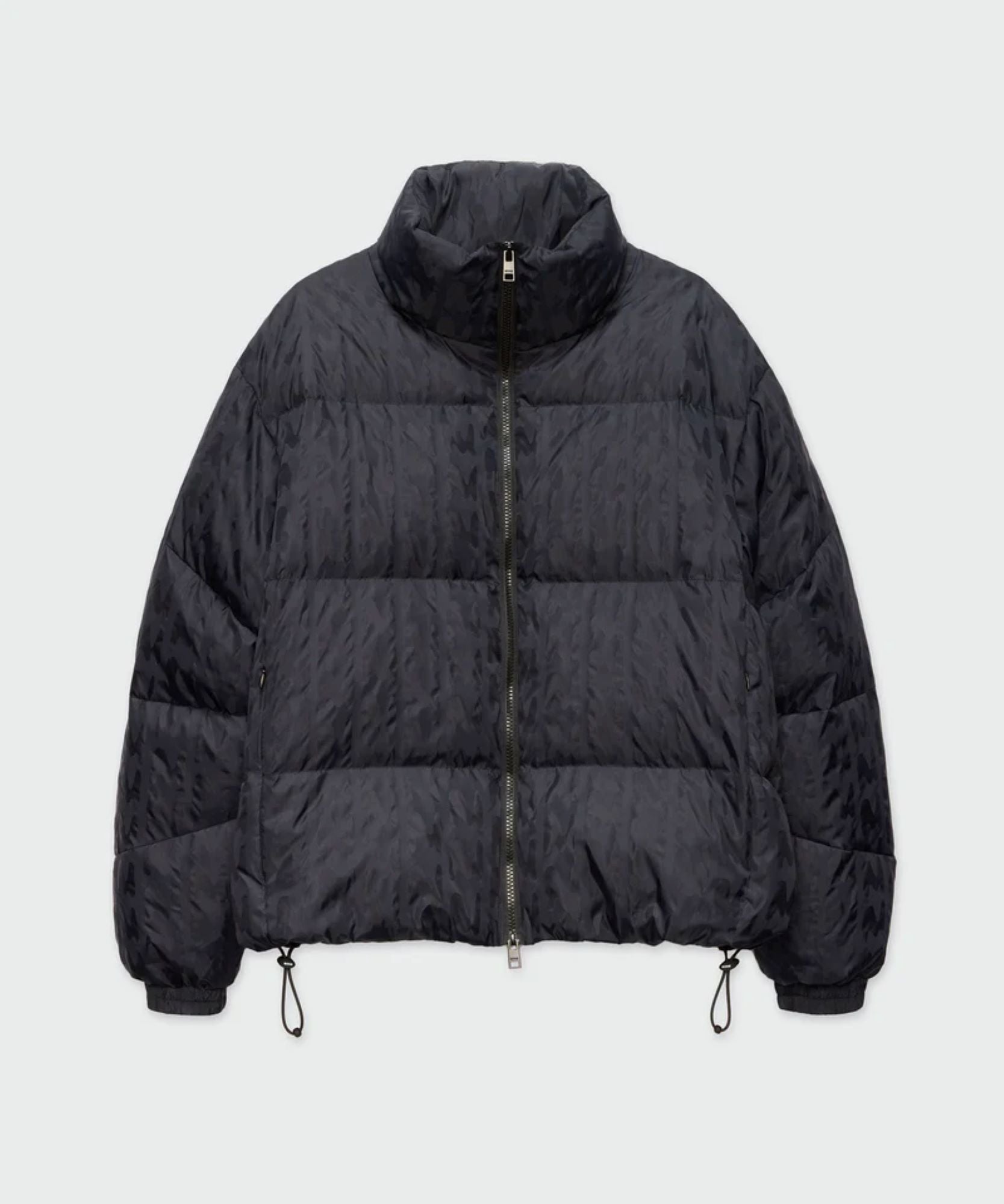 - Piumino in nylon jacquard "TheMwave" all-over. Chiusura frontale con zip a doppio cursore. Tasche laterali con zip invisibile, fondo regolabile con coulisse elastica. Polsini elasticizzati. Vestibilità regular