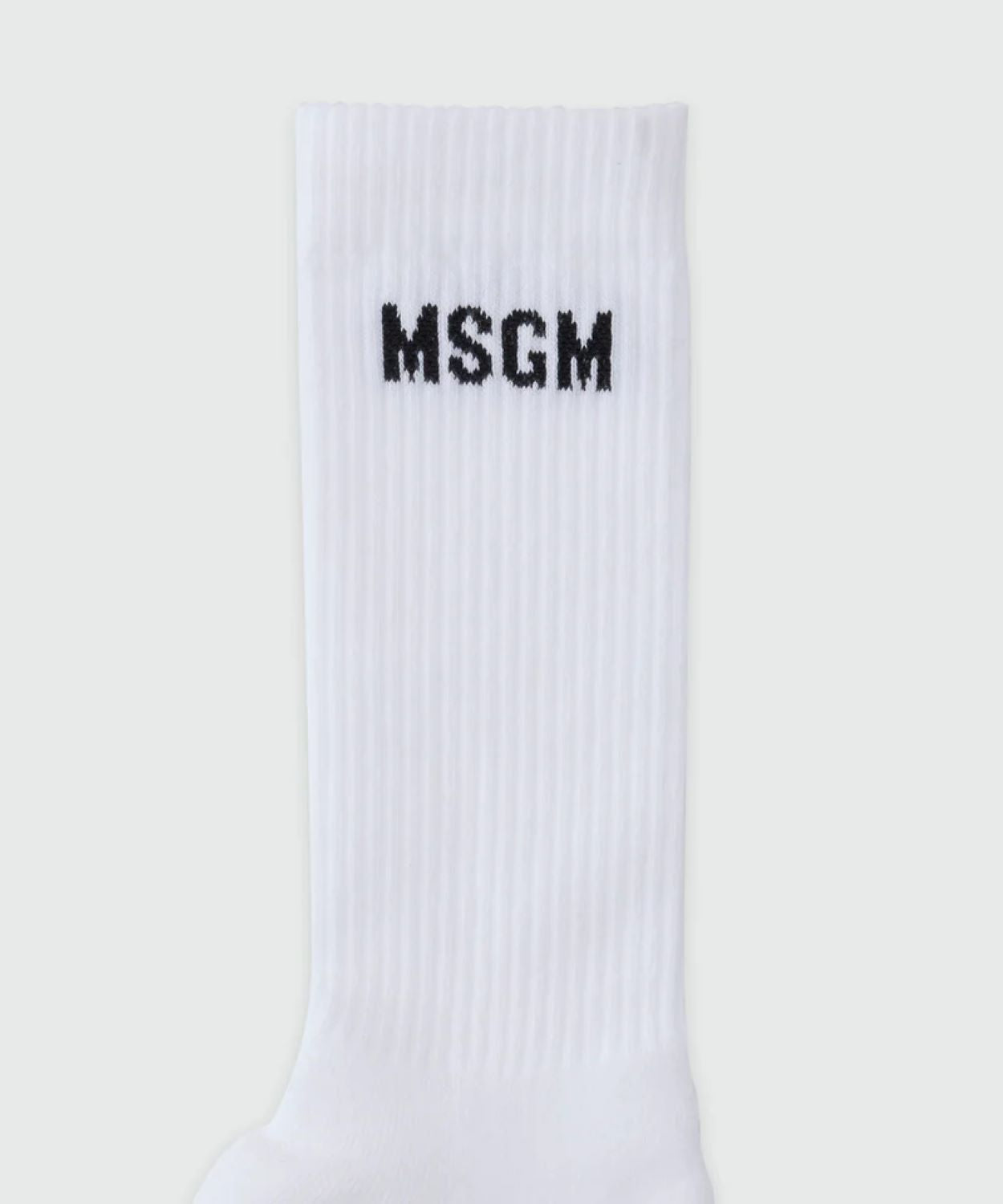 - Calzini in cotone stretch con gambale a costa piatta. Lavorazione jacquard con grafica MSGM. La pianta del piede, la punta e il tallone sono in cotone rinforzato. Taglia UNICA.