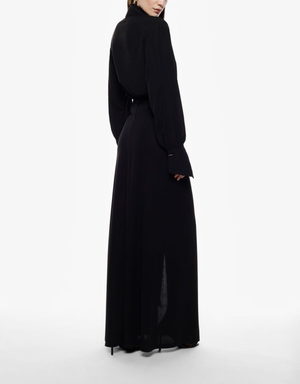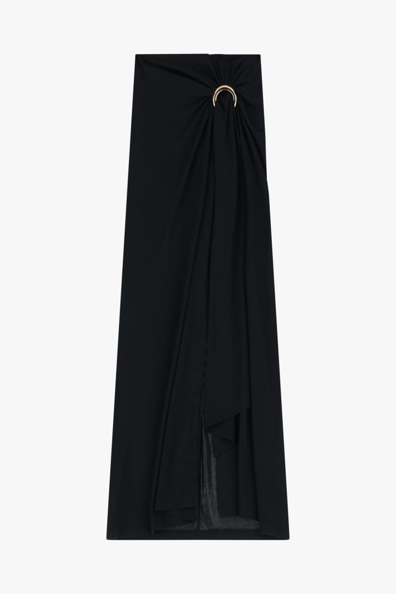 - Anello metallico dorato centrale che crea drappeggio asimmetrico