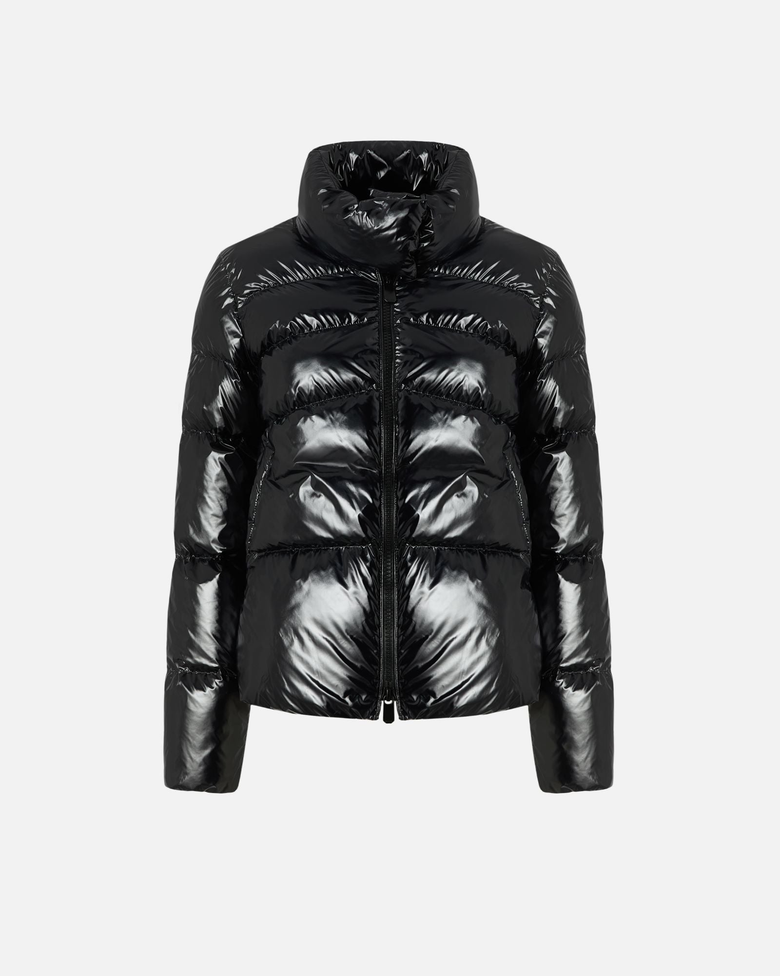 - Piumino imbottito dalla silhouette caban in tessuto crystal nylon dal particolare finishing lucido, personalizzato da patch logo Love Birds su una manica. Il modello è caratterizzato da una trapuntatura orizzontale, leggermente obliqua sul davanti, ed è dotato di un avvolgente collo alto con bottoni nascosti per proteggerti dal freddo. Chiusura con zip a doppio cursore in metallo davanti.