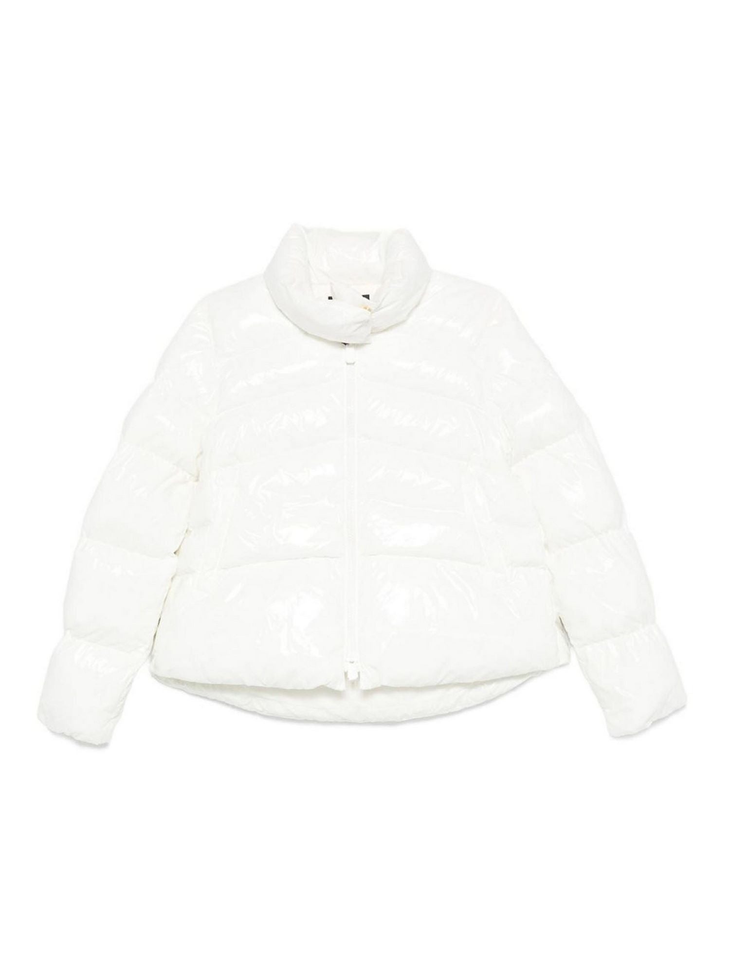 - Piumino imbottito dalla silhouette caban in tessuto crystal nylon dal particolare finishing lucido, personalizzato da patch logo Love Birds su una manica. Il modello è caratterizzato da una trapuntatura orizzontale, leggermente obliqua sul davanti, ed è dotato di un avvolgente collo alto con bottoni nascosti per proteggerti dal freddo. Chiusura con zip a doppio cursore in metallo davanti.