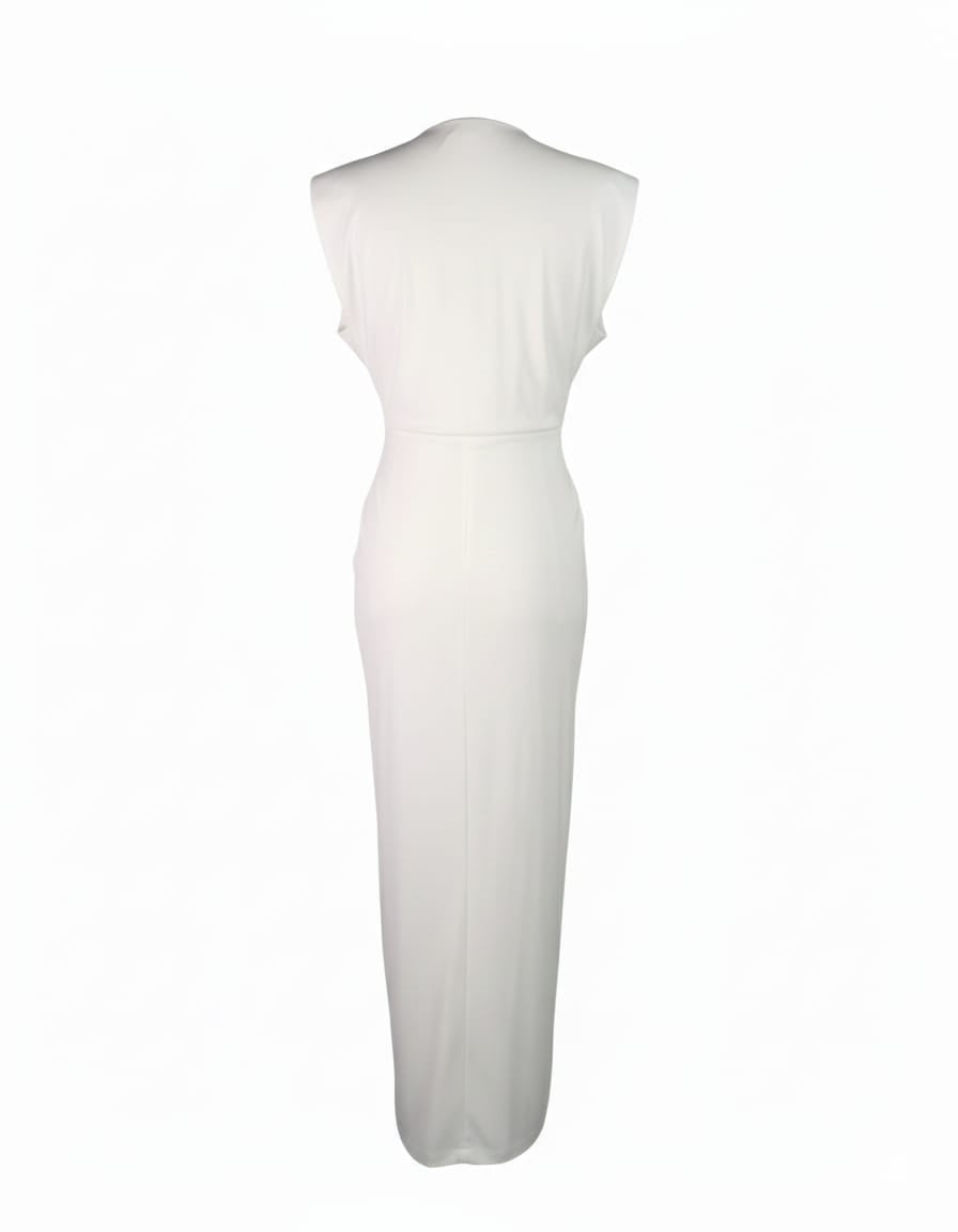 Il color panna è la nuova neutralità luxury - più caldo del bianco, più sofisticato del beige. Questo abito è perfetto per matrimoni estivi, eventi serali o occasioni speciali dove vuoi distinguerti con classe discreta. Il drappeggio strategico valorizza le curve naturali mentre la lunghezza maxi conferisce un'allure da red carpet.