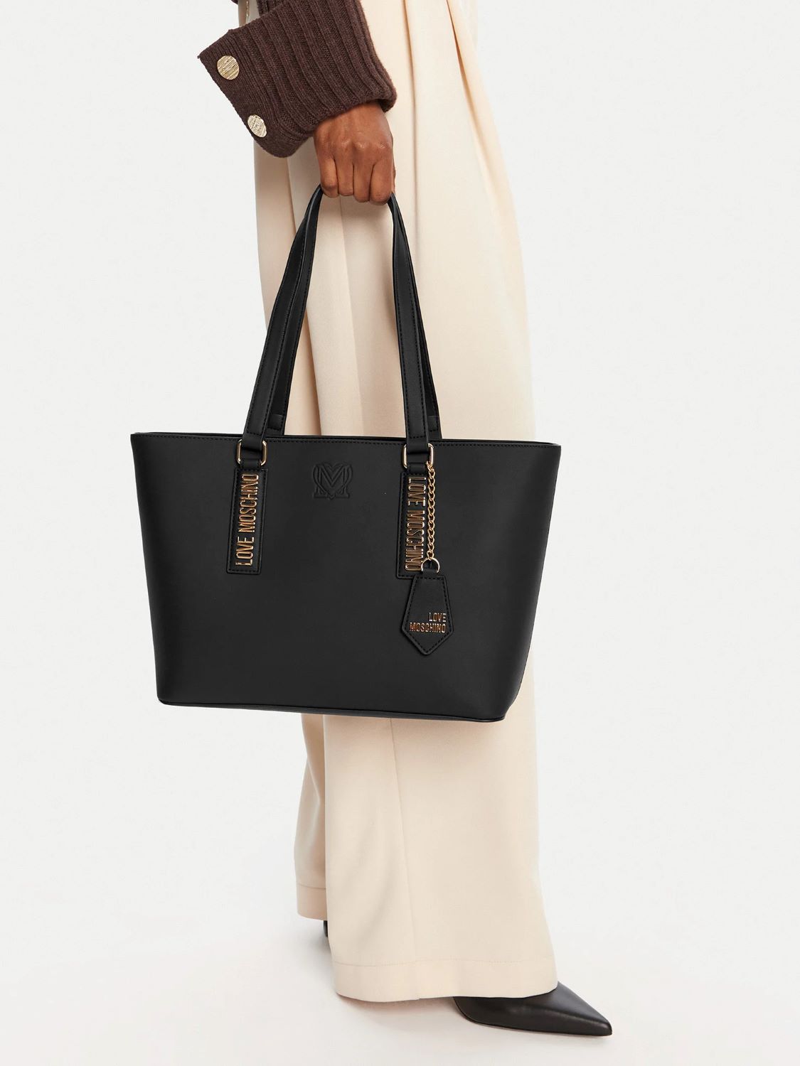- Borsa da donna Love Moschino, a spalla in pelle di colore nero.
