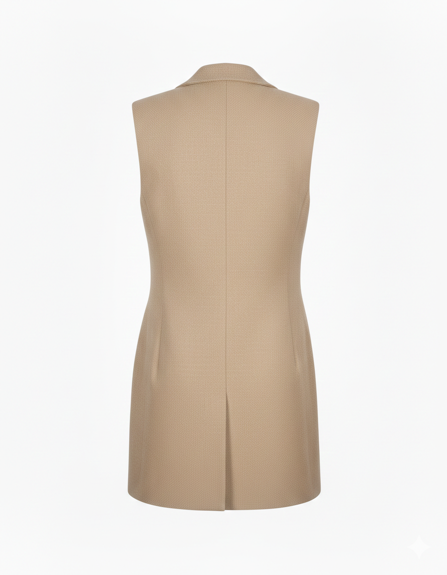 - Scollo e Revers: Ampio collo a scialle piatto che scende morbidamente, creando una linea verticale profonda che valorizza la figura.