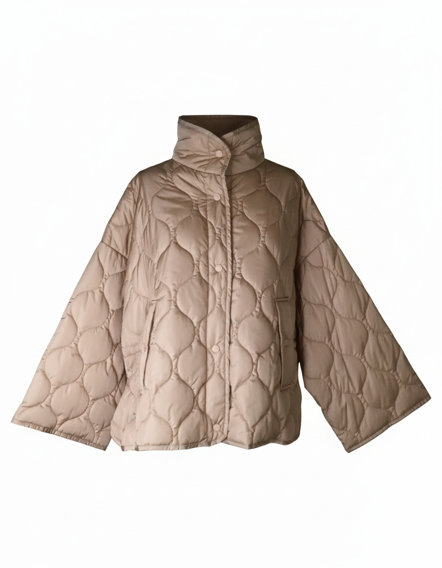 - Maniche: Maniche ampie a 3/4 con taglio a campana, che permettono di giocare con stratificazioni (layering) di maglioni o guanti lunghi.